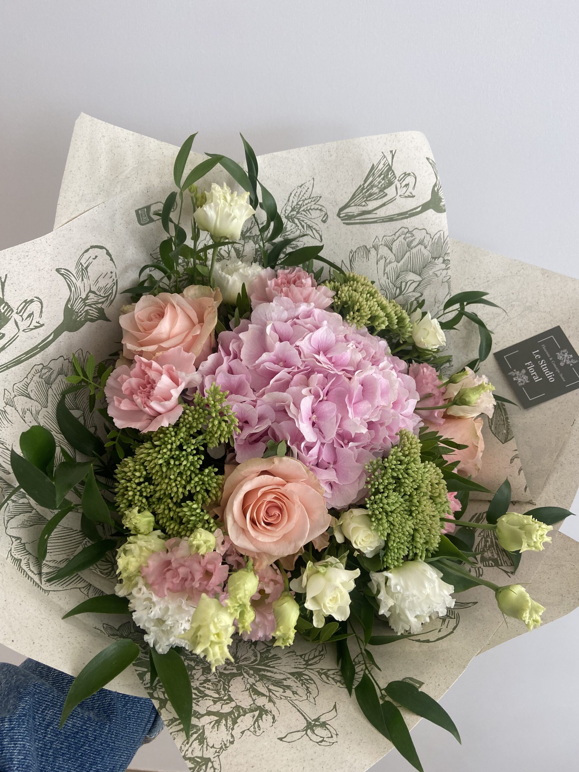 - Packaging : enveloppé avec soin dans un papier kraft, noué avec un lien assorti et finalisé avec la signature de votre fleuriste « Le Studio Floral ».