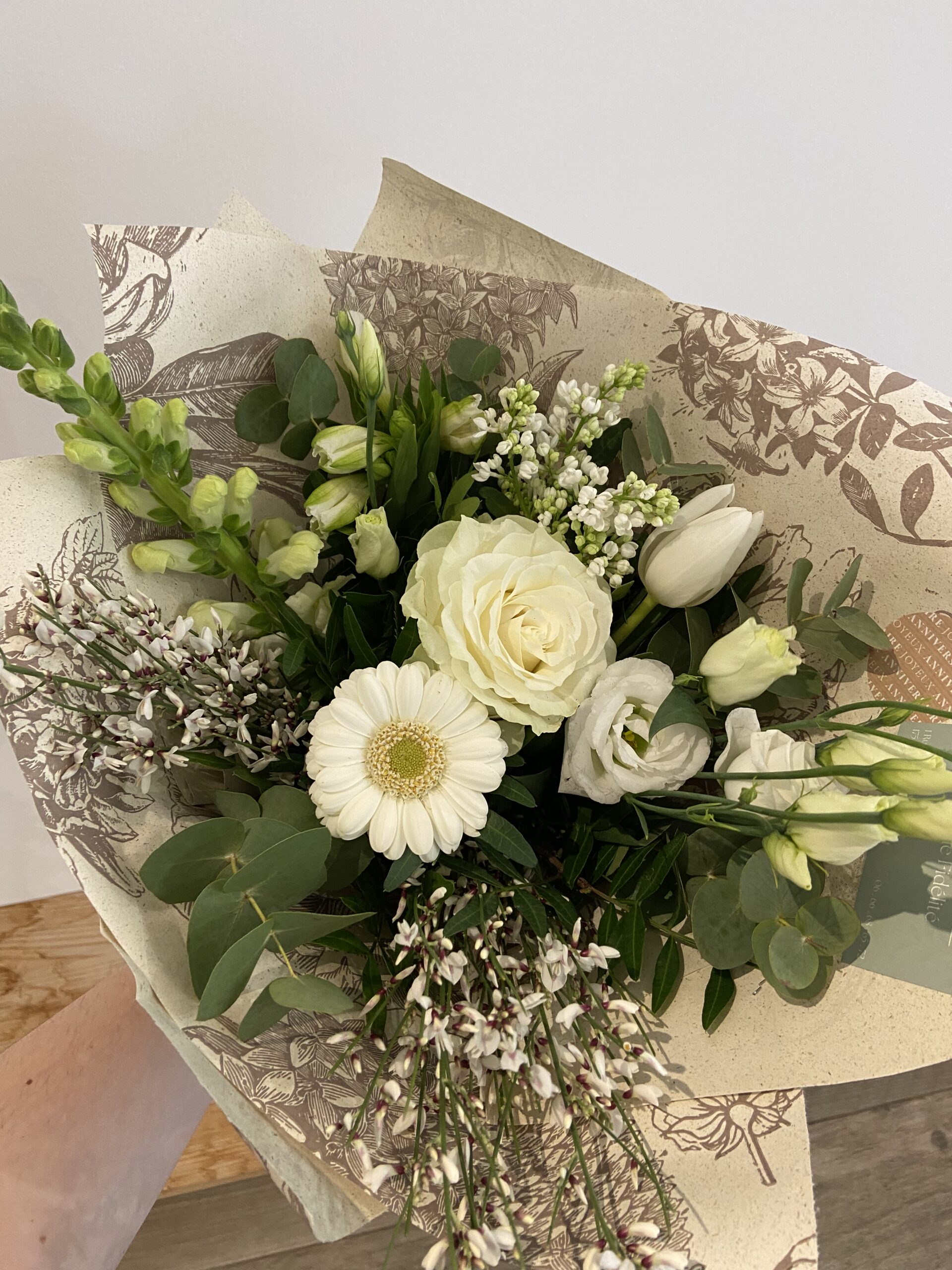 Le Lumineux est bien plus qu’un bouquet : c’est un présent qui accompagnera avec tendresse et élégance un moment de vie. Les fleurs blanches, symbole d’élégance depuis toujours font de ce bouquet un incontournable.